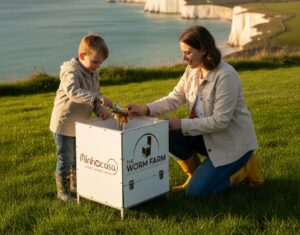 The Worm Farm uses Dendrobaena and Tiger worms, species well suited to active composting and the UK climate. Together they efficiently process organic matter into three valuable outputs: